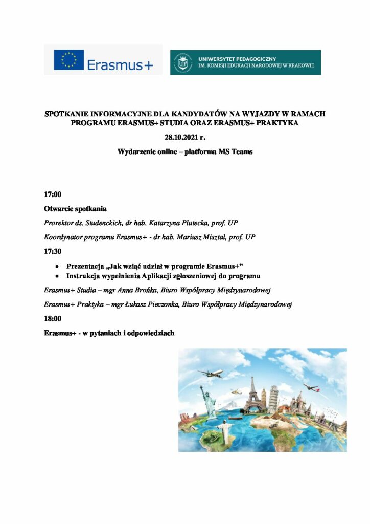 zapraszamy Państwa na spotkanie informacyjne dla studentów dotyczące programu: ERASMUS+STUDIA oraz ERASMUS+PRAKTYKA.