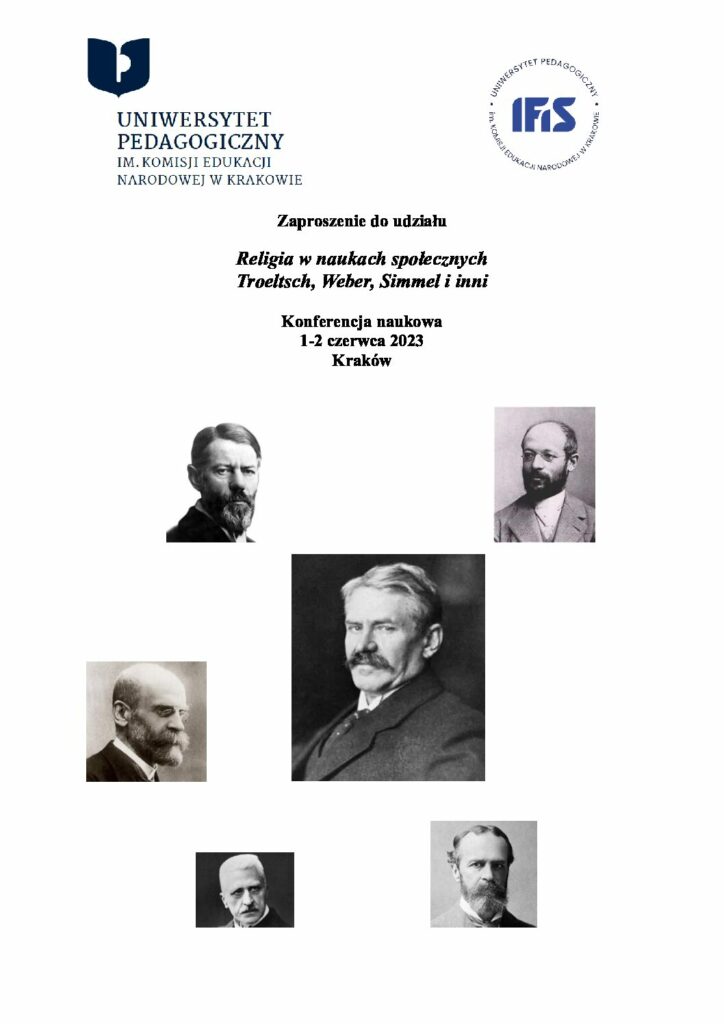 Katedra Socjologii Religii zaprasza do przesyłania zgłoszeń na Konferencję Międzynarodową „Religia w naukach społecznych: Troeltsch, Weber, Simmel i inni”, organizowaną przez Uniwersytet Pedagogiczny w Krakowie 12.06.2023. Abstrakty wystąpień prosimy wysyłać na adres science.of.religion.conference@gmail.com do 28.02.2023