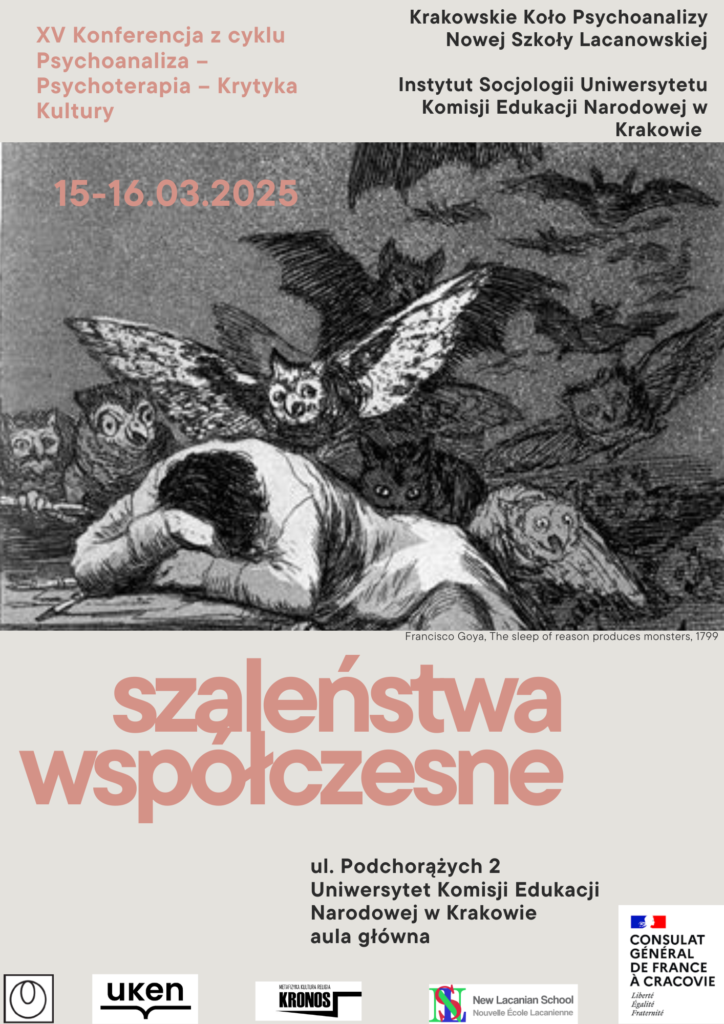 W imieniu organizatorów XV Konferencji z cyklu Psychoanaliza – Psychoterapia – Krytyka Kultury (PPKK) pt. „Szaleństwa współczesne” – wśród których jest także Instytut Socjologii UKEN – serdecznie zapraszamy do udziału w konferencji, która odbędzie się 15-16 marca 2025 roku w Krakowie w Uniwersytecie Komisji Edukacji Narodowej (ul. Podchorążych 2).
