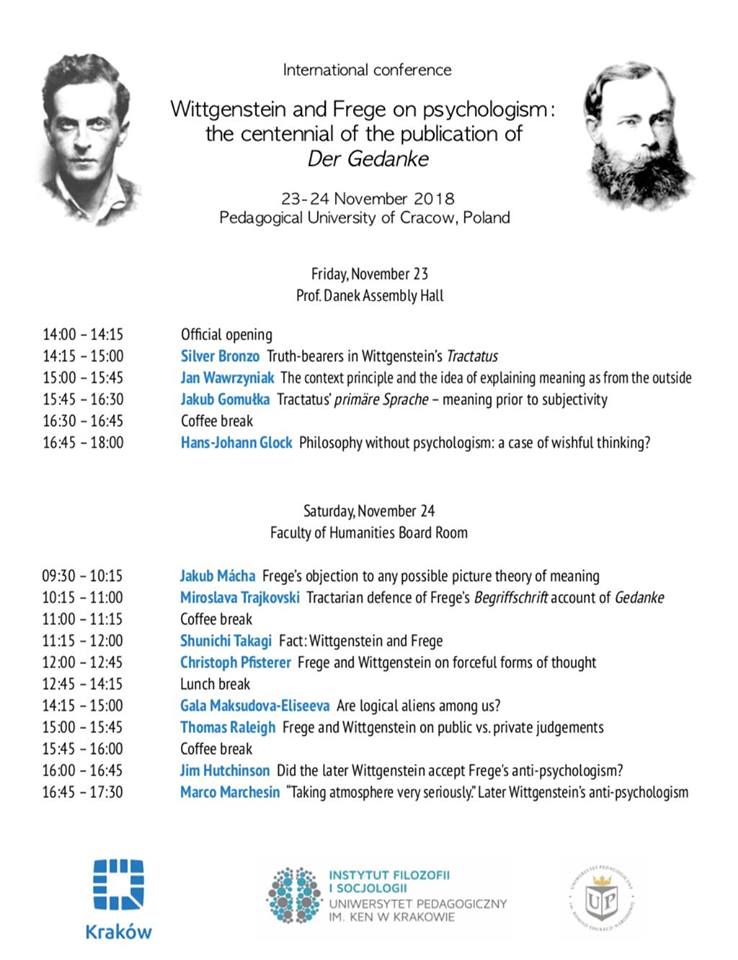 Dwudniowa konferencja dotycząca stosunku Ludwiga Wittgensteina i Gottloba Fregego do psychologizmu w logice, epistemologii i filozofii języka została zorganizowana w związku ze stuleciem publikacji słynnego artykułu Fregego Myśl. Studium logiczne....